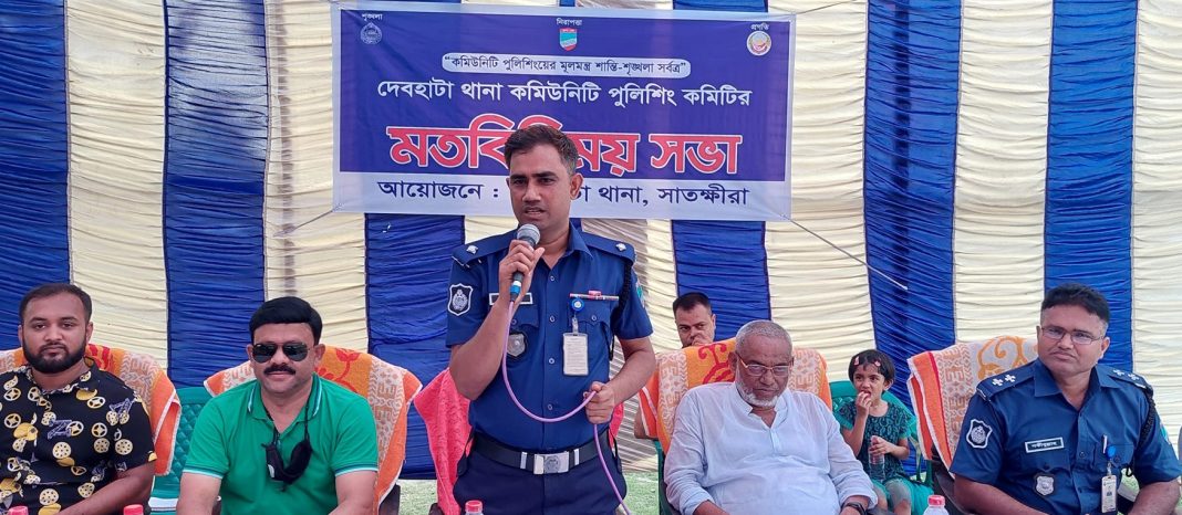 দেবহাটা প্রতিনিধি: দেবহাটা পুলিশের আয়োজনে পুলিশিং কমিটির মতবিনিময় সভা অনুষ্ঠিত হয়েছে। বৃহস্পতিবার বিকাল ৪ টায় থানা চত্বরে এ সভা অনুষ্ঠিত হয়। সভায় দেবহাটা থানার নবাগত অফিসার ইনচার্জ মো. বাবুল আক্তারের সভাপতিত্বে প্রধান অতিথির বক্তব্য দেন উপজেলা চেয়ারম্যান ও উপজেলা পুলিশিং কমিটির সভাপতি মুজিবর রহমান।