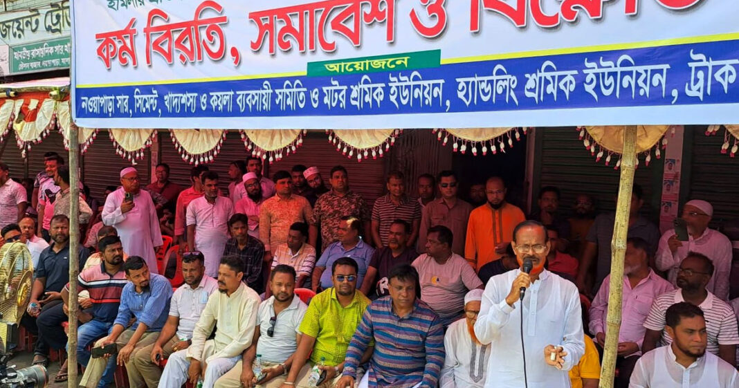 নওয়াপাড়া সার, সিমেন্ট, খাদ্যশস্য ও কয়লা ব্যবসায়ী সমিতি, নৌবন্দর হ্যান্ডলিং শ্রমিক ইউনিয়ন, মোটর শ্রমিক ইউনিয়ন ও ট্রাক ট্রান্সপোর্ট সমিতির উদ্যোগে আয়োজিত কর্মসূচিতে আমদানিকারক, রফতানিকারক, ঘাট, মোটর শ্রমিকসহ বিভিন্ন প্রতিষ্ঠানের কর্মকর্তা কর্মচারী এবং রাজনৈতিক দলের নেতৃবৃন্দ এতে অংশ নেন।