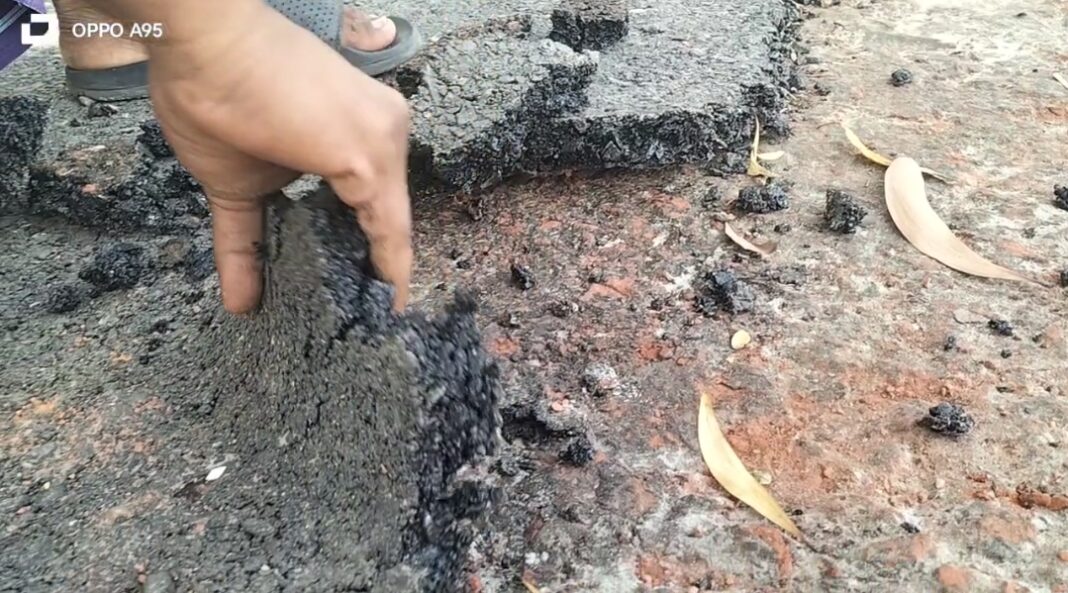 রাস্তার পিচ ঢালাই কাজে সঠিক পরিমান বিটুমিন না দেযায় পিচ টান দিলেই উঠে আসছে। এমন ভিডিও শোসাল মিডিয়া ফেসবুকে ছড়িয়ে পড়লে মূহুর্তের মধ্যে ভিডিও ভাইরাল হয়ে য়ায়।