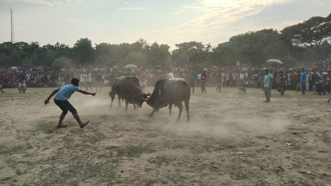 নড়াইল প্রতিনিধি:বিশ্ববরেণ্য চিত্রশিল্পী এস এম সুলতানের ৯৯তম জন্মবার্ষিকী পালন উপলক্ষে নড়াইলে ১৫দিনব্যাপি সুলতান মেলার ৯ম দিনে অনুষ্ঠিত হলো গ্রামবাংলার ঐতিহ্যবাহী ষাঁড়ের লড়াই।