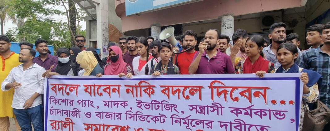 নড়াইলে কিশোর গ্যাং, মাদক, ইফটিজিং, সন্ত্রাসী কর্মকান্ড, চাঁদাবাজি ও বাজার সিন্ডিকেট নির্মূলের দাবিতে র্যালি ও সমাবেশ অনুষ্ঠিত হয়েছে।