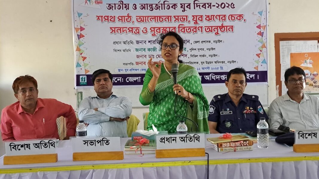 নড়াইল যুব উন্নয়ন অধিদপ্তরের উপপরিচালক মো. মনিরুজ্জামান এর সভাপতিত্বে প্রধান অতিথি হিসেবে উপস্থিত ছিলেন,স্থানীয় সরকার বিভাগের উপ-পরিচালক জুলিয়া শুকায়না,বিশেষ অতিথি হিসেবে উপস্থিত ছিলেন, সিভিল সার্জন ডাক্তার মো. আব্দুর রশিদ,পুলিশ সুপারের প্রতিনিধি ইন্সপেক্টর (সদর সার্কেল) মো. নূরুন্নবী,জেলা জামায়াতে ইসলামীর আমীর আতাউর রহমান বাচ্চু,পৌর বিএনপির সাবেক সভাপতি আজিজুর রহমান প্রমুখ। অনুষ্ঠানে উপলক্ষে নড়াইল জেলায় ১০ লাখ টাকার যুব ঋণের চেক বিতারণ করা হয়।