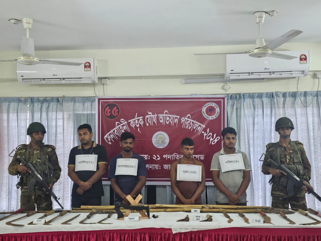 বুধবার (২ অক্টোবর) রাত সাড়ে ৭টার দিকে কালিয়া পৌরসভা কার্যালয়ের সামনে এ ঘটনা ঘটে। ওই ঘটনায় সেনাবাহিনী অভিযান চালিয়ে দেশিয় অস্ত্রসহ চারজনকে আটক করেছে। আটককৃতরা হলো-বেন্দারচর গ্রামের সুমন শেখ (২৩), নাহিদ শেখ (১৯), ওয়ালিদ শেখ (২৭) ও জাকারিয়া (৩৫)। এ ব্যাপারে বৃহস্পতিবার দুপুরে সেনাক্যাম্পে প্রেসব্রিফিং অনুষ্ঠিত হয়।