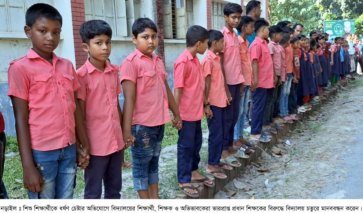 আর চলতি বছরের আগস্ট মাস থেকে তিনি ওই বিদ্যালয়ের ভারপ্রাপ্ত প্রধান শিক্ষক হিসাবে দায়িত্ব পালন করছেন। তাঁর বাড়ি নড়াইল সদরের বোড়ামারা গ্রামে। এ ঘটনায় ওই বিদ্যালয়ের শিক্ষার্থী, শিক্ষক ও অভিভাবকেরা ভারপ্রাপ্ত প্রধান শিক্ষকের বিরুদ্ধে বৃহস্পতিবার সকালে বিদ্যালয় চত্বরে মানববন্ধন করেছেন।