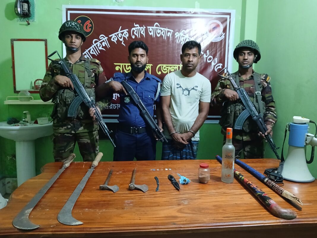 শুক্রবার (১১ এপ্রিল) দিবাগত রাতে উপজেলার নোয়াগ্রাম ইউনিয়নের আড়পাড়া গ্রামে অভিযান চালিয়ে বাবুল মিয়া নামে ওই ব্যক্তিকে আটক করে সেনাবাহিনী। তিনি ওই গ্রামের রেজাউল শেখের ছেলে।