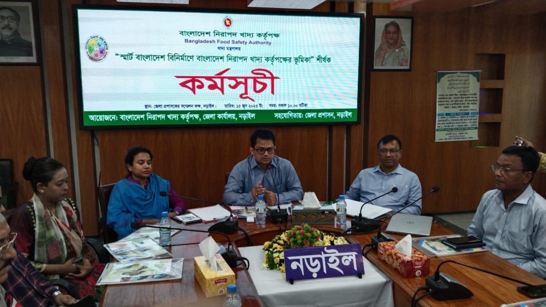 নড়াইল প্রতিনিধি:নড়াইলে স্মার্ট বাংলাদেশ বিনির্মাণে বাংলাদেশ নিরাপদ খাদ্য কর্তৃপক্ষের ভূমিকা শীর্ষক কর্মশালা অনুষ্ঠিত হয়েছে। বৃহস্পতিবার সকাল ১০টায় নিরাপদ খাদ্য কর্তৃপক্ষ নড়াইল জেলা কার্যালয়ের আয়োজনে জেলা প্রশাসকের সম্মেলন কক্ষে প্রধান অতিথি হিসেবে এ কর্মশালার উদ্বোধন করেন জেলা প্রশাসক আশফাকুল হক চৌধুরী। মূুল প্রবন্ধ উপস্থাপন করেন বাংলাদেশ নিরাপদ খাদ্য কর্তৃপক্ষের পরিচালক অমিতাভ মন্ডল।