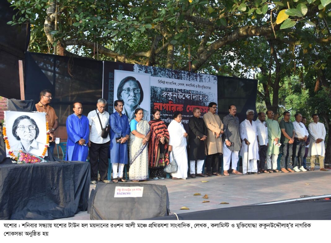 সাংবাদিকতার পাঠশালা ছিলেন রুকুনউদ্দৌলাহ্। তাই তো তিনি গণমানুষের প্রতিনিধিত্বশীল সাংবাদিকতা পছন্দ করতেন। আজ শনিবার সন্ধ্যায় যশোর টাউন হল ময়দানের রওশন আলী মঞ্চে বিশিষ্ট সাংবাদিক, লেখক, কলামিস্ট ও মুক্তিযোদ্ধা রুকুনউদ্দৌলাহ্ নাগরিক শোকসভায় বক্তরা এসব কথা বলেন। নাগরিক শোকসভার কমিটির আয়োজনে সভায় সভাপতিত্ব করেন বাংলাদেশ মহিলা পরিষদের কেন্দ্রীয় নেত্রী হাবিবা শেফা। এতে তার দীর্ঘ কর্মময় জীবন, সামাজিক অঙ্গনে অসামান্য অবদান এবং ব্যক্তিগত স্মৃতিচারণ করেন তার দীর্ঘদিনের সহকর্মী, বিভিন্ন রাজনীতিক ব্যক্তিত্ব, সাংস্কৃতিক সামাজিকসহ বিভিন্ন শ্রেণী পেশার মানুষেরা। এক মিনিট নিরাবতার পরে উদীচী যশোর সংসদের শিল্পীগোষ্ঠী পরিবেশনে আগুনের পরশমনি গানে এই স্মরণসভা শুরু হয়।