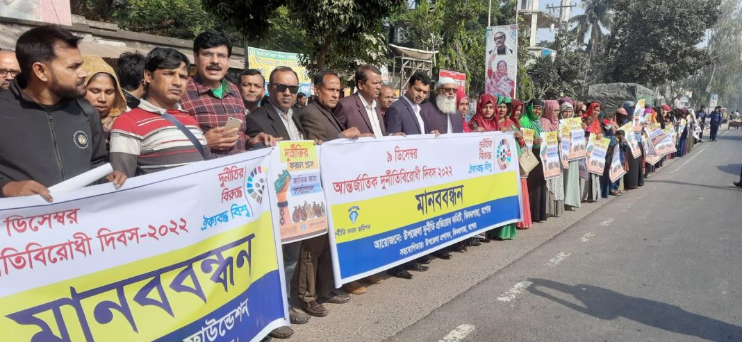 উপলে সকালে যশোর-বেনাপোল মহাসড়কের উপজেলা মোড়ে দুর্নীতি প্রতিরোধে মানববন্ধন পালন করা হয়। তার আগে একটি শোভাযাত্রা বের করা হয়। পরে উপজেলা কনফারেন্স রুমে আলোচনা সভা অনুষ্ঠিত হয়। “আমরা দুর্নীতির বিরুদ্ধে একতাবদ্ধ” এই স্লোগানে দুর্নীতি দমন ও প্রতিকারে করণীয় শীর্ষক আলোচনা সভায় সভাপতিত্ব করেন উপজেলা নির্বাহী কর্মকর্তা মাহবুবুল হক। বক্তব্য রাখেন উপজেলা মহিলা ভাইস চেয়ারম্যান লুবনা তাী, উপজেলা প্রকৌশলী শ্যামল কুমার বসু, উপজেলা মহিলা বিষয়ক কর্মকর্তা অনিতা মল্লিক, পুলিশের উপ-পরিদর্শক এটিএম তরিকুল ইসলাম, উপজেলা দুর্নীতি প্রতিরোধ কমিটির সহ-সভাপতি শহিদুল ইসলাম, সাধারণ সম্পাদক মনিরুজ্জামান মনির, বীর মুক্তিযোদ্ধা লিয়াকত আলী, বীর মুক্তিযোদ্ধা গোলাম মোস্তফা। সভায় বিভিন শিক্ষাœ প্রতিষ্ঠানের প্রধান, এনজিওকর্মী এবং সামাজিক স্ংাস্কৃতিক প্রতিনিধি অংশ গ্রহণ করেন।