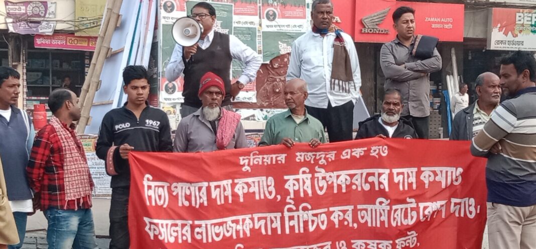 কৃষির সাথে সংশ্লিষ্ট কৃষক ক্ষেতমজুর প্রতিনিধি, কৃষি, জলবায়ু বিশেষজ্ঞদের সমন্বয়ে কৃষি কমিশন গঠন, সার, বীজ, কীটনাশক, বিদ্যুৎ, ডিজেল, সেচসহ সকল কৃষি উপকরনের দাম কমানো, বন্ধ সকল পাটকল ও চিনিকল আধুনিকায়ন করে অবিলম্বে চালু, পোল্ট্রি ফিড, গো-খাদ্য, ও ওষুধের দাম কমানো সহ মোট দশটি দাবি বাস্তবায়নের দাবিতে উপজেলা নির্বাহী কর্মকর্তার কার্যালয়ে স্মারকলিপি প্রদান করে নেতৃবৃন্দ।