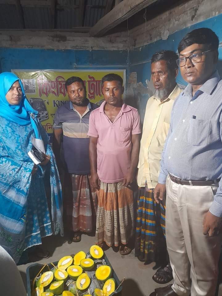 এ খবর শুনে উপজেলা স্যানেটারি ইনেসপেক্টর উদয় মন্ডল উপজেলা নির্বাহী অফিসার ও নির্বাহী ম্যাজিস্ট্রেট মাহেরা নাজনীন কে নিয়ে অভিমান চালিয়ে ৩ ব্যাবসায়ী উপজেলার গোপালপুর গ্রামের সোবহান কে ১৫ হাজার টাকা,চেচুয়া গ্রামের এরশাদ কে ১০ হাজার টাকা এ সরল গ্রামের লতীফ কে ৫ হাজার টাকা জরিমানা করে ২৪ ক্যারেট আম কেরোসিন দিয়ে ও বাসের চাকায় পিষ্ট করে নষ্ট করা হয়। নির্বাহী ম্যাজিস্ট্রেট এর সাথে ছিলেন