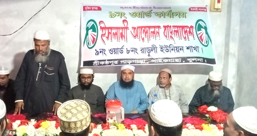 শনিবার বিকালে পাইকগাছা উপজেলার রাড়ুলী ইউনিয়নের ৯ ওয়ার্ড শাখার শ্রীকন্ঠপুর গ্রামে অফিস উদ্বোধন উপলক্ষে এক আলোচনা সভা মাওঃ কবির হোসেনের সভাপতিত্বে অনুষ্ঠানে প্রধান অতিথি হিসেবে উপস্থিত ছিলেন ইসলামী আন্দোলন বাংলাদেশের কেন্দ্রীয় সূরা সদস্য, খুলনা জেলা শাখার সেক্রেটারি খুলনা -৬ আসনের প্রার্থী হাফেজ আসাদুল্লাহ আল গালিব।