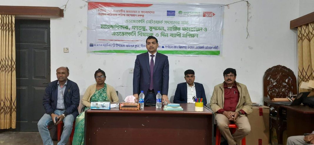 ইউরোপীয় ইউনিয়ন ও খ্রিস্টান এইটের অর্থায়নে এডভোকেসি নেটওয়ার্ক সদস্যদের জন্য মানবাধিকার, গণতন্ত্র, সুশাসন, নারীর মতায়ন ও এডভোকেসি বিষয়ক ৩ দিনের এ প্রশিণে ২৫ জন অংশ গ্রহন করেন।