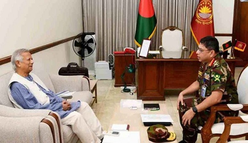 বার্তায় বলা হয়, প্রধান উপদেষ্টা অধ্যাপক ড. মুহাম্মদ ইউনূসের সঙ্গে বাংলাদেশের সেনাপ্রধান জেনারেল ওয়াকার-উজ-জামান সাক্ষাৎ করেন। বৈঠকে জেনারেল ওয়াকার উজ জামান প্রধান উপদেষ্টাকে তার সাম্প্রতিক যুক্তরাষ্ট্র ও কানাডা সফর সম্পর্কে অবহিত করেন।