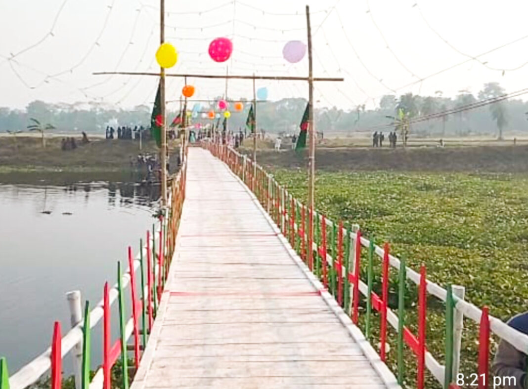 মনিরামপুর প্রতিনিধি: যশোরের মনিরামপুর উপজেলার রাজগঞ্জের ডুমুরখালি বাজার সংলগ্ন খেয়াঘাটে নিজস্ব অর্থায়নে কাঠ ও বাঁশ দিয়ে তৈরি একটি সেতু আনুষ্ঠানিকভাবে উদ্বোধন করা হয়েছে।