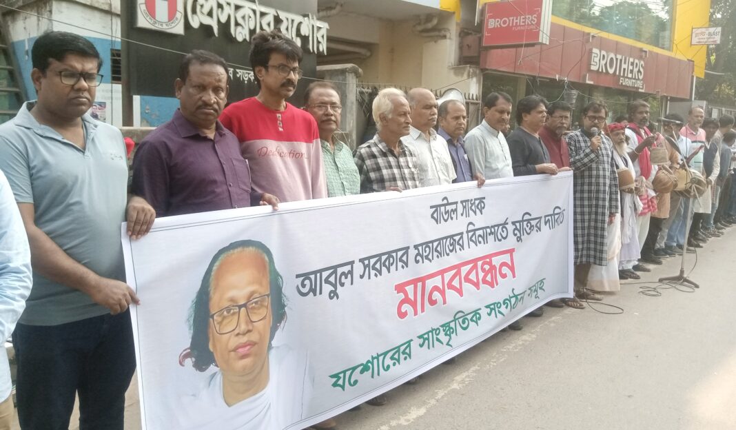 বাউল আবুল সরকারের মুক্তির দাবিতে যশোরে মানববন্ধন