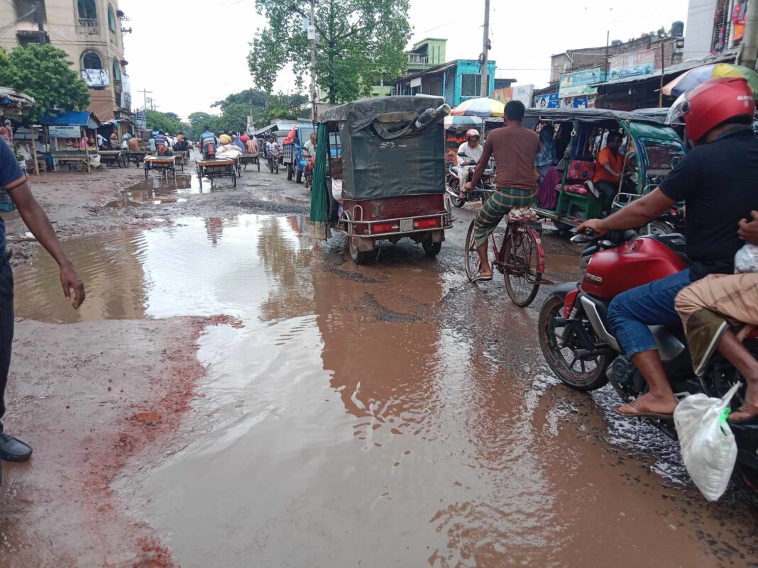 সড়ক বিভাগ মাঝে মাঝে ইট বালি দিয়ে গর্ত পুরণ করলে ও এখন যেন এ সড়কের দুরাবস্থা দেখার কেউ নেই..?