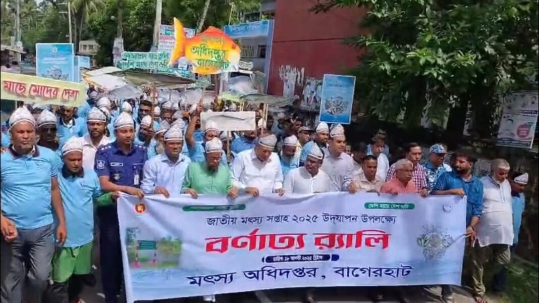 বাগেরহাট প্রতিনিধি:বাগেরহাটে বাগেরহাটে বর্নাঢ্য আয়োজনে মৎস্য সপ্তাহ শুরু হয়েছে। সোমবার (১৮ আগস্ট) বেলা ১১টায় বাগেরহাট উপজেলা পরিষদের সামনে থেকে একটি বর্নাঢ্য শোভাযাত্রা বের করা হয়। বিভিন্ন সড়ক প্রদক্ষিন শেষে শোভাযাত্রাটি উপজেলা পরিষদ মিলনায়তনে এসে শেষ হয়। সেখানে বেলুন ও পায়রা উড়িয়ে জাতীয় মৎস্য সপ্তাহের উদ্বোধন করেন জেলা প্রশাসক আহমেদ কামরুল আহসান।