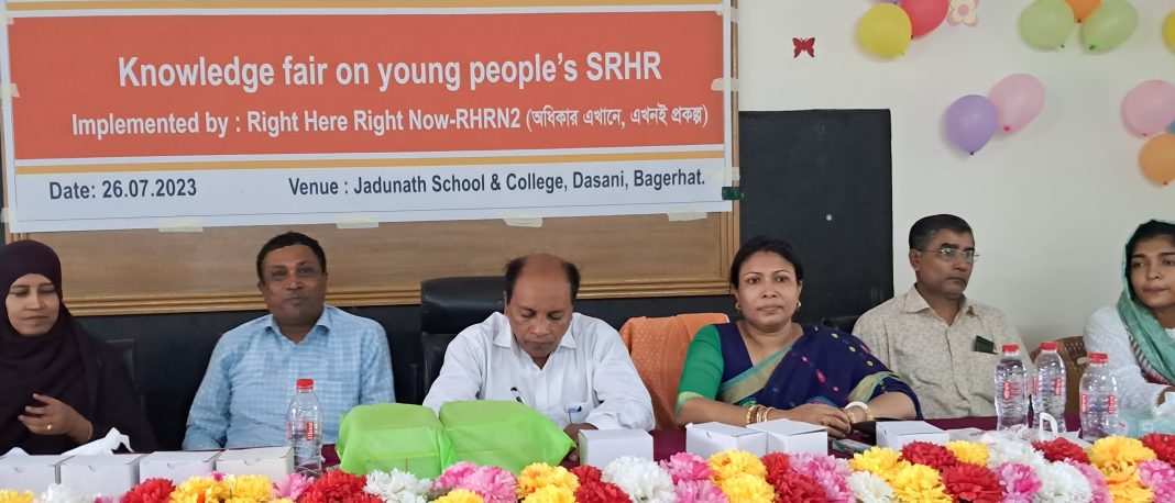 বাগেরহাট প্রতিনিধি: বাগেরহাটে যৌন ও প্রজনন স্বাস্থ্য বিষয়ে শিক্ষার্থীদের সচেতনতা বৃদ্ধি, যৌন ও প্রজনন স্বাস্থ্য সুরক্ষা নিশ্চিত করার লক্ষ্যে নলেজ ফেয়ার অনুষ্ঠিত হয়েছে। বুধবার (২৬ জুলাই) সকালে বাগেরহাটের যদুনাথ স্কুল অ্যান্ড কলেজের হল রুমে শিক্ষার্থীদের নিয়ে ওই নলেজ ফেয়ার অনুষ্ঠিত হয়।