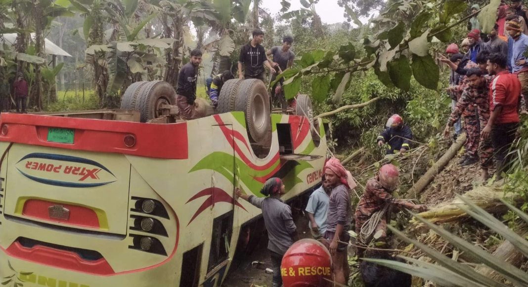 বাঘারপাড়া ফায়ার সার্ভিস অফিসের ভারপ্রাপ্ত স্টেশন অফিসার আইয়ুব হোসেন বলেন,’খবর পেয়ে দুর্ঘটনাস্থলে পেঁৗছে স্থানীয়দের সহযোগিতায় উদ্ধার কাজ শুরু করি। কেউ নিহত হয়নি। তবে বাসটির যাত্রী সবাই কমবেশি আহত হয়েছে’।