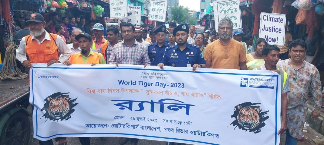”বাঘ করি সংরক্ষণ; সমৃদ্ধ হবে সুন্দরবন” শ্লোগানে বিশ্ব বাঘ দিবসের উদ্বোধনী সমাবেশে সভাপতিত্ব করেন ওয়াটারকিপার্স বাংলাদেশ’র সমন্বয়কারি বাংলাদেশ পরিবেশ আন্দোলন (বাপা) এর সাবেক কেন্দ্রিয় সাধারণ সম্পাদক শরীফ জামিল। সমাবেশে প্রধান অতিথির বক্তব্য রাখেন উপজেলা নির্বাহি অফিসার দীপংকর দাশ। বিশেষ অতিথির বক্তব্য রাখেন সহকারি পুলিশ সুপার মুশফিকুর রহমান তুষার, থানা অফিসার ইনচার্জ মোহাম্মদ সামসুদ্দিন, সুন্দরবন ও উপকূল সুরক্ষা আন্দোলনের সমন্বয়কারি সাংবাদিক নিখিল ভদ্র, ফেডারেল সাংবাদিক ইউনিয়নের সাংস্কৃতিক সম্পাদক শাকিলা পারভীন, মোংলা সরকারি কলেজের প্রভাষক শ্যামা প্রসাদ সেন ও প্রভাষক মাহবুবুর রহমান। উদ্বোধনী সমাবেশ পরিচালনা করেন পশুর রিভার ওয়াটারকিপার বাংলাদেশ পরিবেশ আন্দোলন (বাপা) এর কেন্দ্রিয় নেতা মোঃ নূর আলম শেখ।