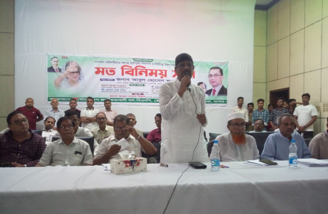 সনাতন ধর্মাবলম্বীদের আসন্ন দুর্গাপূজা নিরাপদ ও নির্বিঘ্নে উদযাপনে সহায়তার লক্ষ্যে কেশবপুর উপজেলা ও পৌর বিএনপির উদ্যোগে অনুষ্ঠিত মতবিনিময় সভায় প্রধান অতিথির বক্তব্যে কেন্দ্রীয় বিএনপির কার্যনির্বাহী কমিটির সদস্য ও উপজেলা বিএনপির সভাপতি আলহাজ্ব আব্দুল হোসেন আজাদ এসব কথা বলেন।