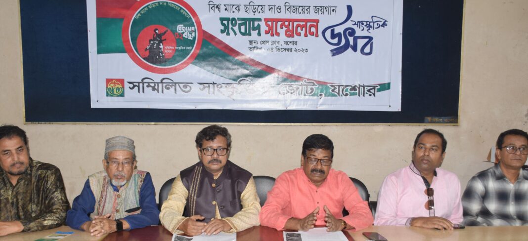 ৪ ডিসেম্বর দুপুরে প্রেসক্লাব যশোর মিলনায়তনে সংবাদ সম্মেলনের মাধ্যমে এ তথ্য উপস্থাপন করেন যশোরে বিজয়ের ৫২বছর পূর্তি উদযাপন পরিষদের সদস্য সচিব সানোয়ার আলম খান দুলু। সভাপতিত্ব করেন সম্মিলিত সাংস্কৃতিক জোট যশোর জেলা শাখার ভারপ্রাপ্ত সভাপতি দীপংকর দাস রতন।#
