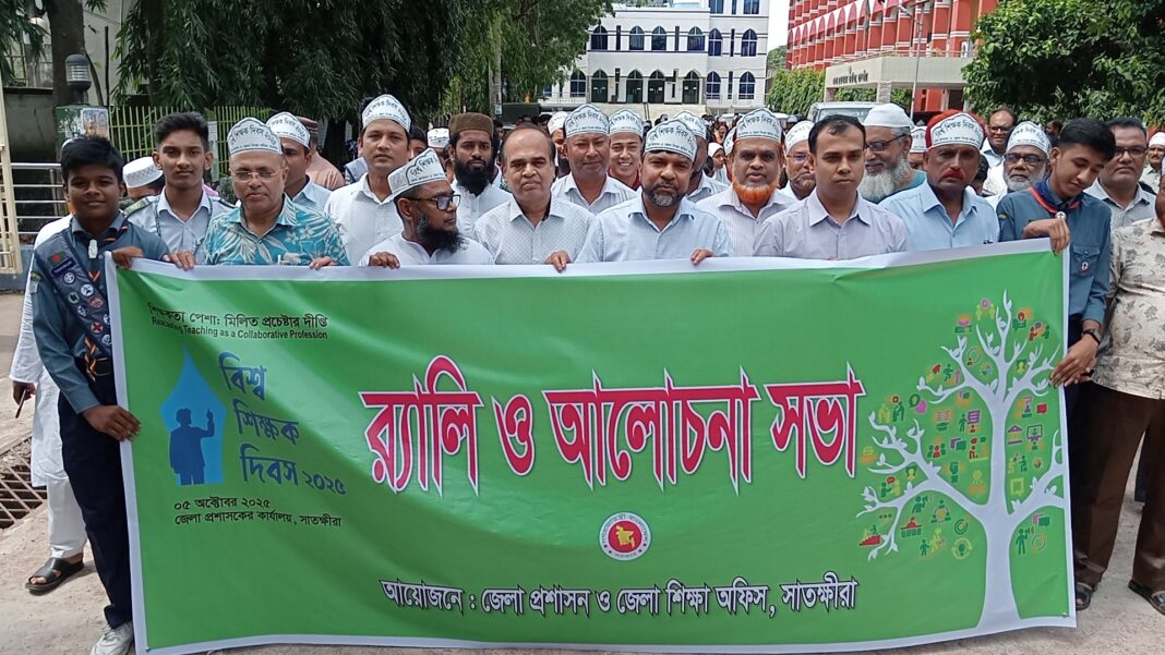 ‘শিক্ষকতা পেশা: মিলিত প্রচেষ্টার দীপ্তি’ এই প্রতিপাদ্যে সাতক্ষীরায় বর্ণাঢ্য আয়োজনে পালিত হয়েছে বিশ্ব শিক্ষক দিবস-২০২৫।