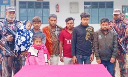 তিনি জানান ধান্যখোলা বিওপি’র জেলেপাড়া পোস্টে দিযে পাসপোর্ট ব্যতীত অবৈধভাবে সীমান্ত অতিক্রম করে বাংলাদেশে অনুপ্রবেশ কালে ৫জন পুরুষ ও ২ শিশুসহ ৭ বাংলাদেশী নাগরিককে আটক করা হয়।