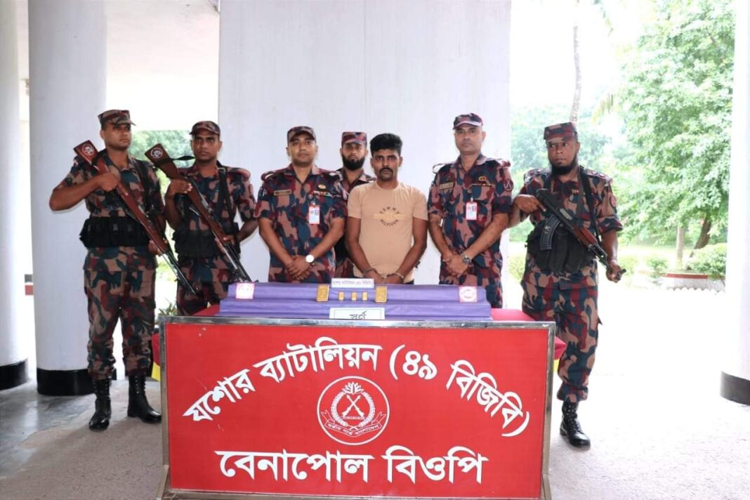 বুধবার (২৫ সেপ্টেম্বর) সকালে বেনাপোল কাচাঁ বাজার এলাকা থেকে এই স্বর্ণের চালানসহ তাকে আটক করা হয় ।
