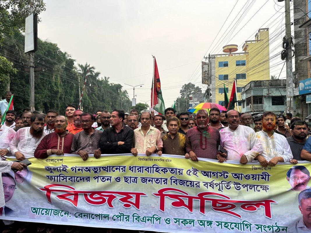 বেনাপোল প্রতিনিধি: “জুলাই গণঅভ্যুত্থান দিবস” বর্ষপূর্তি উপলক্ষে বেনাপোল পৌর বিএনপি ও সহযোগী সংগঠনের উদ্যোগে এক বর্ণাঢ্য বিজয় র্যালি অনুষ্ঠিত হয়েছে।