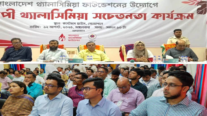 সুমন হোসাইন: বেনাপোলে বাংলাদেশ থ্যালাসেমিয়া ফাউন্ডেশনের উদ্যোগে থ্যালাসিমিয়া সচেতনতা বিষয়ক সেমিনার অনুষ্ঠিত হয়েছে। মঙ্গলবার (১২ আগস্ট) সকাল ১১ টায় বেনাপোল কাষ্টমস ক্লাবে উক্ত অনুষ্ঠানের আয়োজন করা হয়।