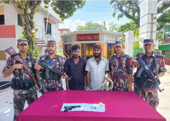 ৪৯ বিজিবি ব্যাটালিয়নের অধিনায়ক লেফটেন্যান্ট কর্নেল সাইফুল্লাহ সিদ্দিকী জানান, ভারত থেকে কাঁচা মরিচ নিয়ে আসা একটি ট্রাক বাংলাদেশে প্রবেশ করলে বিজিবির সদস্যরা তা তল্লাশি করেন। এ সময় চালকের কেবিন থেকে একটি ইয়ার পিস্তল ও ৯০ রাউন্ড গুলি পাওয়া যায়। বাংলাদেশে অস্ত্র ও গুলি আনা নিষিদ্ধ হওয়ায় সেগুলো জব্দ করা হয়েছে। আটক দুজনকে অস্ত্র আইনে মামলা দিয়ে পুলিশের কাছে সোপর্দ করা হয়েছে।