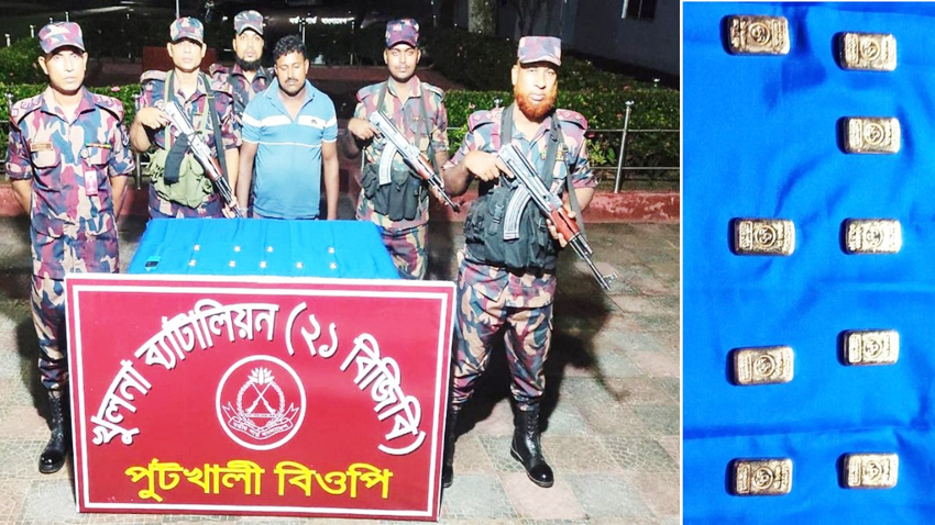 এ ব্যাপারে অধিনায়ক লেঃ কর্নেল মোহাম্মদ খুরশীদ আনোয়ার জানান, গোপন সংবাদের ভিত্তিতে সহকারী পরিচালক মোঃ সফিয়ার রহমান এর নেতৃত্বে পুটখালী বিওপি’র একটি টহল দল পুটখালী উত্তরপাড়া নামক স্থানে পাকা রাস্তার পাশে থেকে ৯ পিস স্বর্ণের বারসহ মনিরুজ্জামানকে আটক করেন।