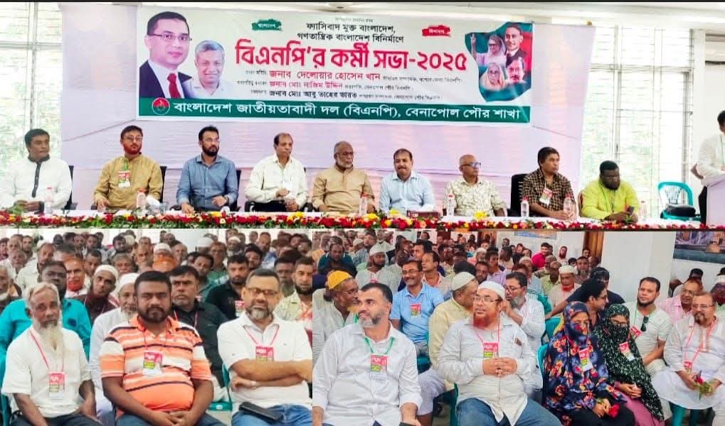 শনিবার ( ৯ আগস্ট ) বিকেলে বেনাপোল পৌর বিএনপির উদ্যেগে,বেনাপোল পৌর বিয়ে বাড়ি কমিউনিটি সেন্টারে পৌর বিএনপির সভাপতি মোঃ নাজিম উদ্দিন এর সভাপতিত্বে ও পৌর বিএনপির সাধারণ সম্পাদক আবু তাহের ভারতের সঞ্চালনায় এই কর্মী সমাবেশ অনুষ্ঠিত হয়।