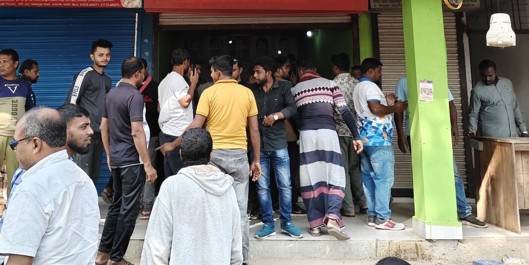 বেনাপোল প্রতিনিধি: বেনাপোল পৌরসভার কাগজপুকুর ওয়ার্ডে হামলা, ভাংচুর ও একটি চায়ের দোকান পুড়িয়ে দেওয়া সহ কাগজপুকুর ওয়ার্ডের বিএনপির যুবদল কেন্দ্রীয় কমিটি’র সাবেক সহ- সভাপতি নুরুজ্জামান লিটন গ্রুপের পার্টি অফিসে তালা ঝুলানোর অভিযোগ উঠেছে বিএনপির সাবেক দপ্তর সম্পাদক মফিকুল হাসান তৃপ্তি গ্রুপের সমর্থকদের বিরুদ্ধে।মঙ্গলবার (২৬ নভেম্বর) রাতে এ হামলার ঘটনা ঘটে।
