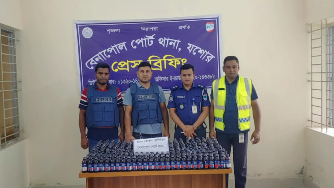 পুলিশ জানায়, গোপন সংবাদে জানতে পারি বেনাপোল দৌলতপুর সীমান্তে রাশেদ মাস্টারের বাড়ির উত্তর পাশে পঁচা পানির পুকুরে ফেনসিডিলের চালান মজুত করছে। এমন সংবাদের ভিত্তিতে পুকুরে থেকে ৩টি লাল রঙের প্লাস্টিক বস্তার মধ্যে হতে ৩শ” বোতল ফেনসিডিল উদ্ধার করা হয়। উদ্ধারকৃত ফেনসিডিলের মূল্য ৬ লাখ টাকা।