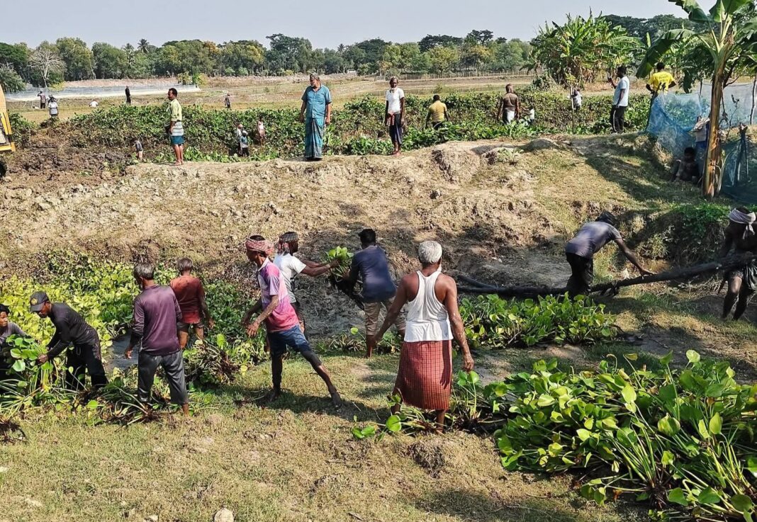 ভবদাহের জলাবদ্ধতা থেকে মুক্তি পেতে স্বেচ্ছাশ্রমে কচুরিপানা অপসারণ