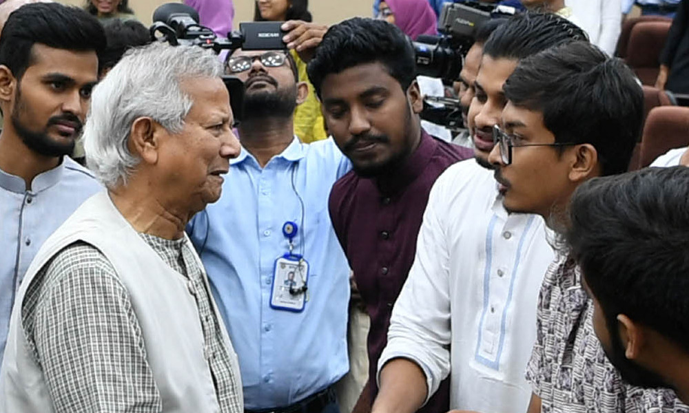 রবিবার (৮ সেপ্টেম্বর) রাজধানীর তেজগাঁও অবস্থিত প্রধান উপদেষ্টার কার্যালয়ে ছাত্র সংগঠক এবং বিভিন্ন বিশ্ববিদ্যালয় ও কলেজের ছাত্র প্রতিনিধিদের সাথে এক মতবিনিময় সভায় প্রধান উপদেষ্টা এ কথা বলেন।