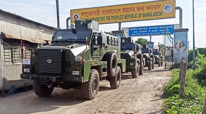 বেনাপোল প্রতিনিধি:সামরিক শক্তিকে আরও শক্তিশালী করতে বাংলাদেশ সেনাবাহিনীর জন্য ভারত থেকে মাইন প্রটেকটেড ১১টি সামরিক যান আমদানি করা হয়েছে। যার আমদানি মূল্য ৪৬ কোটি টাকা। মঙ্গলবার (৯ জুলাই) সন্ধ্যা সাড়ে ৭টার দিকে ভারতের পেট্রাপোল বন্দর দিয়ে এসব সামরিক যান বেনাপোল বন্দরে প্রবেশ করে। বুধবার বিকেলের দিকে সামরিক যানগুলো বেনাপোল বন্দর থেকে খালাস করা হয়।