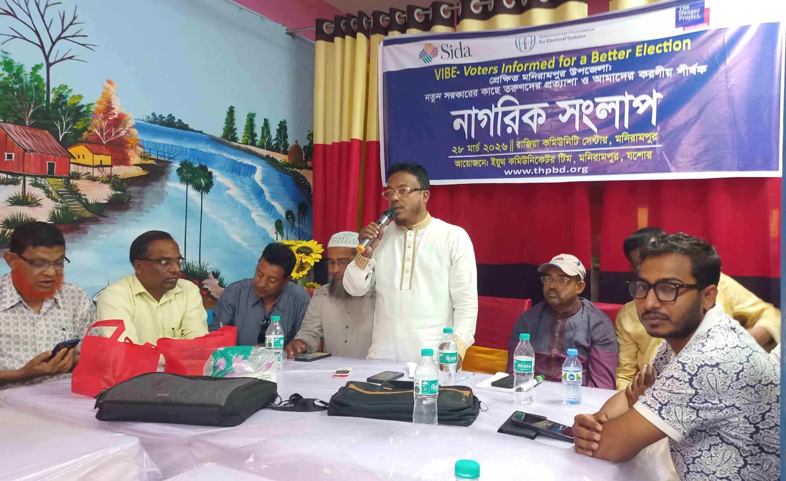 শনিবার (২৮ মার্চ ২০২৬) সকাল ১১টায় উপজেলা পরিষদ সংলগ্ন রাজিয়া কমিউনিটি সেন্টারে “নতুন সরকারের কাছে তরুণদের প্রত্যাশা ও আমাদের করণীয়—প্রেক্ষিত: মণিরামপুর উপজেলা” শীর্ষক এ সংলাপ অনুষ্ঠিত হয়।