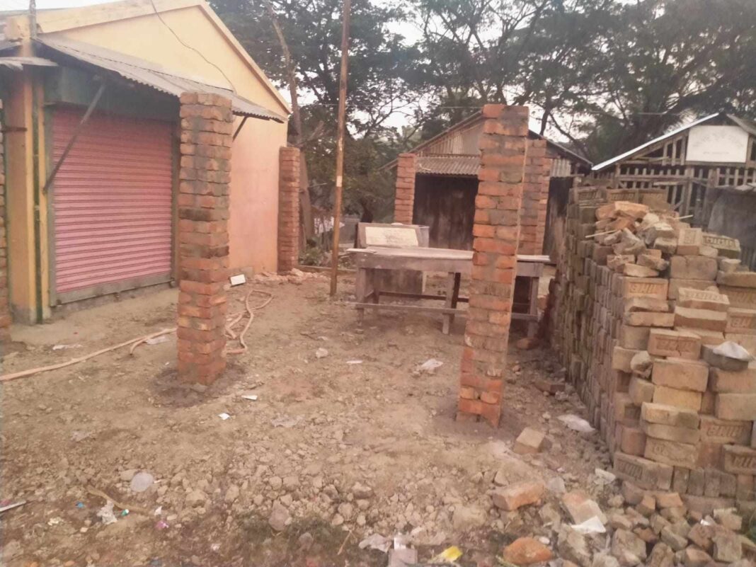 ছবি : কপালিয়া বাজারে বধ্যভূমির স্মৃতিফলক ঘিরে পাকা ঘর তোলা হচ্ছে।