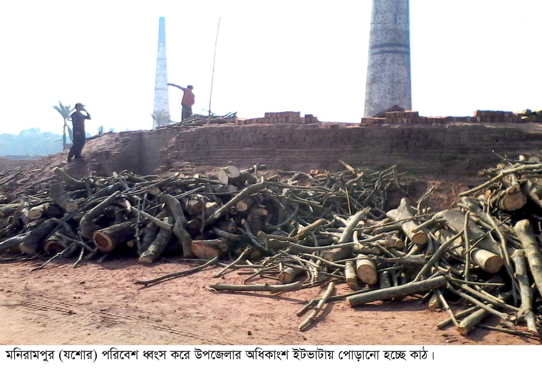 জি.এম.বাবু. রাজগঞ্জ (যশোর) ॥ যশোরের মনিরামপুর উপজেলার একটি পৌরসভাসহ ১৮ ইউনিয়নে দ্রুত গতিতে কমছে তিন ফসলের কৃষি জমি। ইতিমধ্যে শতশত একর আবাদি জমি চলে গেছে বৃহত্তর এ উপজেলার ৪১টি ইট ভাটার পেটে। আর এ কারণে মারাত্মক বিপর্যয়ের মুখে উপজেলার কৃষি ব্যবস্থা ও পরিবেশ। বৃহত্তর মনিরামপুর উপজেলায় যত্রতত্র ভাবে অপরিকল্পিত ভাবে গড়ে উঠেছে অসংখ্য ইটভাটা। ফলে প্রতিনিয়ত কমছে এলাকার কৃষি জমি আর সেই সাথে কয়লার পরিবর্তে কাঠ পোড়ানোয় উজাড় হচ্ছে এ উপজেলার বনাঞ্চল। একটি পৌরসভা ও ১৮টি ইউনিয়ন নিয়ে গঠিত দেশের বৃহত্তর মনিরামপুর উপজেলা। যার আয়তন ৪৪৪.৭৩ বর্গ কিলোমিটার বা ১৭১.৭৩ বর্গমাইল। যার জনসংখ্যা প্রায় ৫লাখ। মফস্বল ও পল্লী জনপদ হওয়া সত্বেও বৃহত্তর এ উপজেলায় জনসংখ্যার ঘনত্ব তুলনামুলকভাবেও অনেক বেশি। এই ঘনত্ব জনসংখ্যার মধ্যে ৪১টি ইটভাটায় গিলে খাচ্ছে শতশত একর তিন ফসলের আবাদি জমি। ইটভাটা নির্মাণ ও মাটি কেটে ইট তৈরী করায় দিনদিন এলাকা থেকে আবাদি জমি কমে যাচ্ছে। সেই সাথে কমতে শুরু করেছে কৃষি পন্যের উৎপাদন পাশাপাশি কয়লার পরিবর্তে ইটভাটায় কাঠ পোড়ানোয় নষ্ট হচ্ছে বনায়ন।