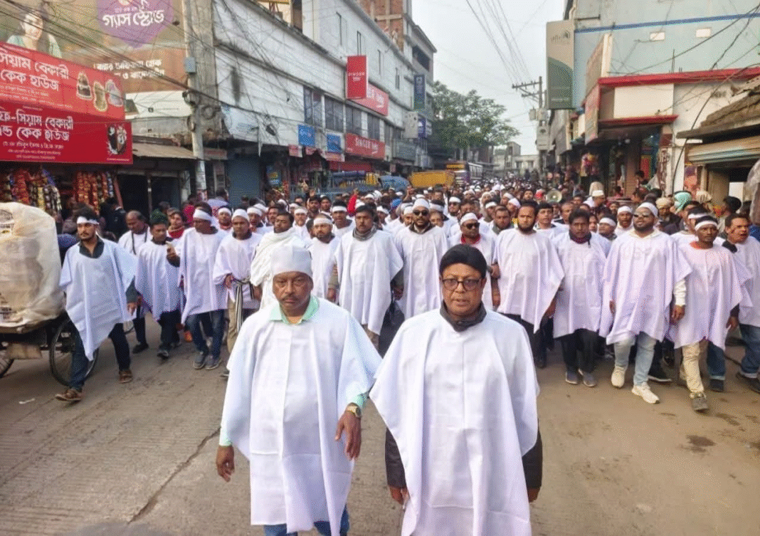 এরই ধারাবাহিকতায় শনিবার (২৭ ডিসেম্বর) বিকাল ৩টার দিকে মনিরামপুর পৌরশহরে হাজার হাজার নেতাকর্মী ও সমর্থক কাফনের কাপড় পরে বিক্ষোভ মিছিল বের করেন। মিছিল শেষে কেন্দ্রীয় মসজিদের সামনে এক সমাবেশ অনুষ্ঠিত হয়।