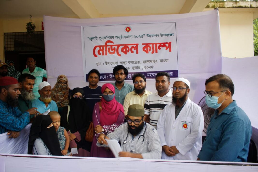 মহম্মদপুর ( মাগুরা) প্রতিনিধিঃ “জুলাই পুনর্জাগরণ অনুষ্ঠানমালা ২০২৫”-এর অংশ হিসেবে মাগুরার মহম্মদপুর উপজেলা স্বাস্থ্য কমপ্লেক্সে দিনব্যাপী মেডিকেল ক্যাম্পের আয়োজন করা হয়েছে। (২৮জুলাই) রবিবার উপজেলা স্বাস্থ্য কমপ্লেক্স কেন্দ্রীয় নির্দেশনা অনুযায়ী মেডিকেল ক্যাম্পের আয়োজন করে।মেডিকেল ক্যাম্পের আনুষ্ঠানিক উদ্বোধন করেন উপজেলা স্বাস্থ্য ও পরিবার পরিকল্পনা কর্মকর্তা ডা.আবু আহসান।