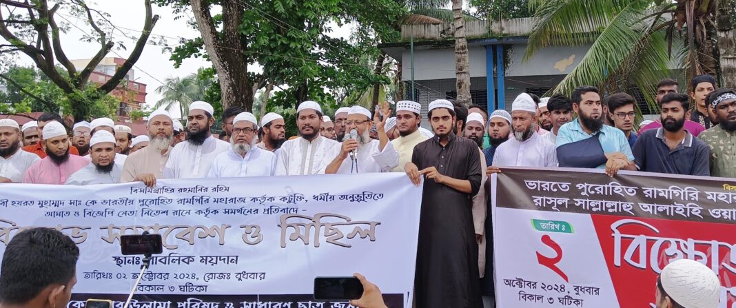 যশোরের কেশবপুরে মহানবী হযরত মুহাম্মদ (সাঃ)-কে ভারতীয় পুরোহিত রামগিরি মহারাজ কর্তৃক কটুক্তি, ধর্মীয় অনুভূতিতে আঘাত এবং বিজেপী নেতা নিতেশ রানে কর্তৃক সমর্থনের প্রতিবাদে বিশাল বিক্ষোভ মিছিল ও সমাবেশ করা হয়েছে।
