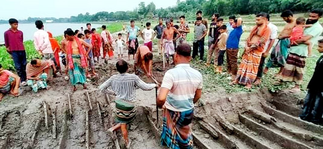 গ্রামবাসী সূত্রে জানাগেছে, বজরাপুর গ্রামের নজের আলীর ছেলে মনছের আলী তিনদিন আগে বজরাপুর বাঁওড় থেকে ধানক্ষেতে পানি দেওয়ার জন্য সেচখাল খনন করছিলেন। খাল খুড়তে খুড়তে তার কোদালের মাথায় নৌকার কিছু অংশ উঠে আসে। এ খবর প্রচার হয়ে পড়লে গ্রামের মানুষ সমষ্টিগত ভাবে নৌকার সন্ধানে খনন শুরু করতে থাকেন। তিনদিন ধরে খননের পর বৃহস্পতিবার পুরো নৌকার আকৃতি খুঁজে পান।