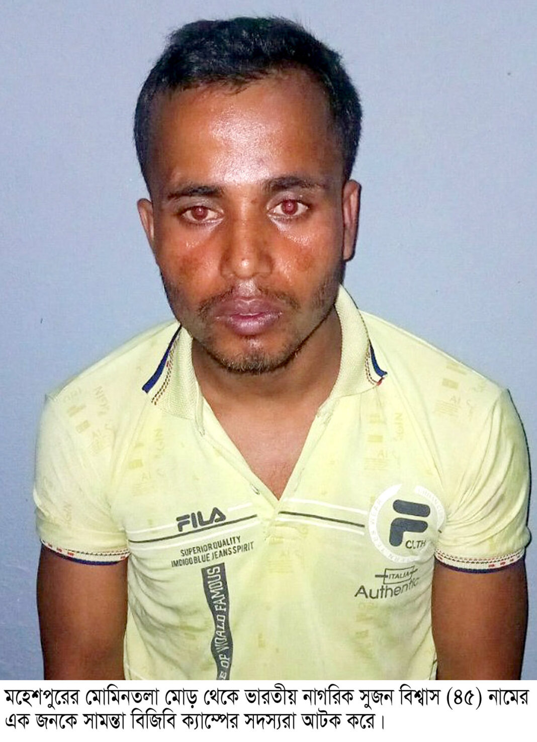 বিজিবি সদস্যদের হাতে আটক সুজন বিশ্বাস ভারতের কুচবিহার জেলার হাজড়াপাড়া গ্রামের বাদেরপাড় এলাকার জগেশ বিশ্বাসের ছেলে।