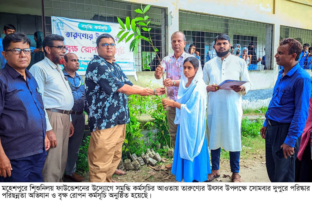 নিজস্ব প্রতিবেদক,মহেশপুর: ঝিনাইদহের মহেশপুরে শিশুনিলয় ফাউন্ডেশনের উদ্যোগে সমৃদ্ধি কর্মসূচির আওতায় তারুণ্যের উৎসব উপলক্ষে পরিস্কার পরিছন্নতা অভিযান ও বৃক্ষ রোপন কর্মসূচি অনুষ্ঠিত হয়েছে।