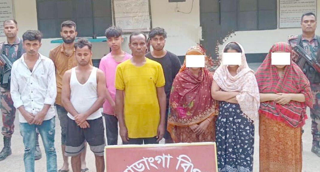 বিজিবি সুত্রে জানাগেছে, শুক্রবার সকালে মহেশপুরের বাঘাডাঙ্গা সীমান্ত দিয়ে ভারতে যাওয়ার সময় ৯ জনকে আটক করা হয়। এর মধ্যে ৬ জন পুরুষ, ৩ জন নারী রয়েছে।