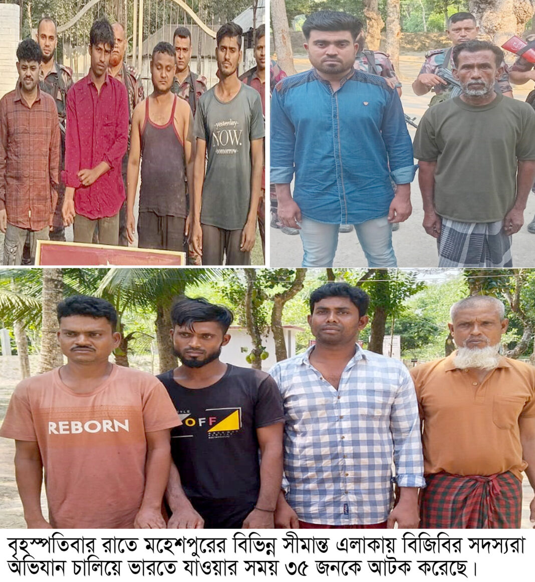 বৃহস্পতিবার (৮ মে) রাতে ঝিনাইদহের মহেশপুরের বিভিন্ন সীমান্ত এলাকায় মহেশপুর ৫৮ বিজিবির সদস্যরা অভিযান চালিয়ে ৩৫ জনকে আটক করেছে। আটক কৃতদের মধ্যে নারী ও শিশুও রয়েছে।